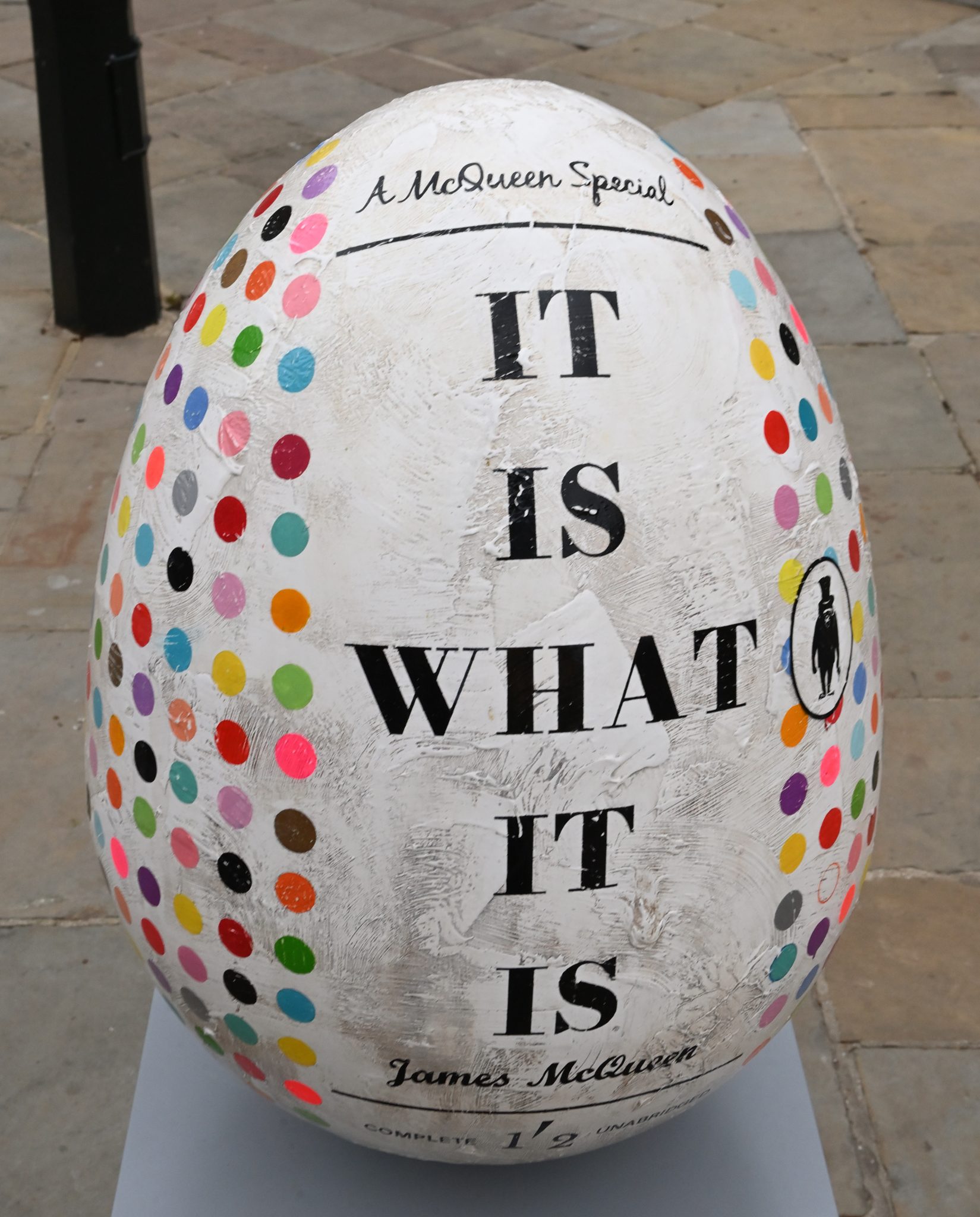 The titles and sentiments are evocative, playful and sometimes cynical. Working under a pseudonym, he introduces an autobiographical dimension to the work with his trademark monkey, using this mischievous character as a kind of personal insignia.